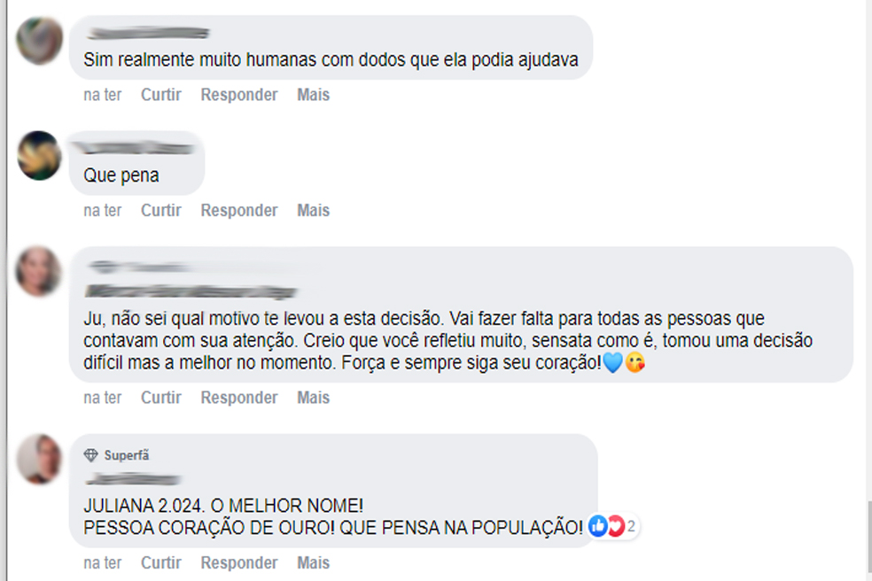 Nas redes sociais, houve uma comoção geral com o anúncio da possível saída de Juliana. Até pouco tempo, políticos e o entorno do prefeito Márcio Miguel a consideravam um nome forte para uma disputa. Com as manifestações pró-Juliana, eles agora estão convictos. Basta saber se ela vai aceitar.
