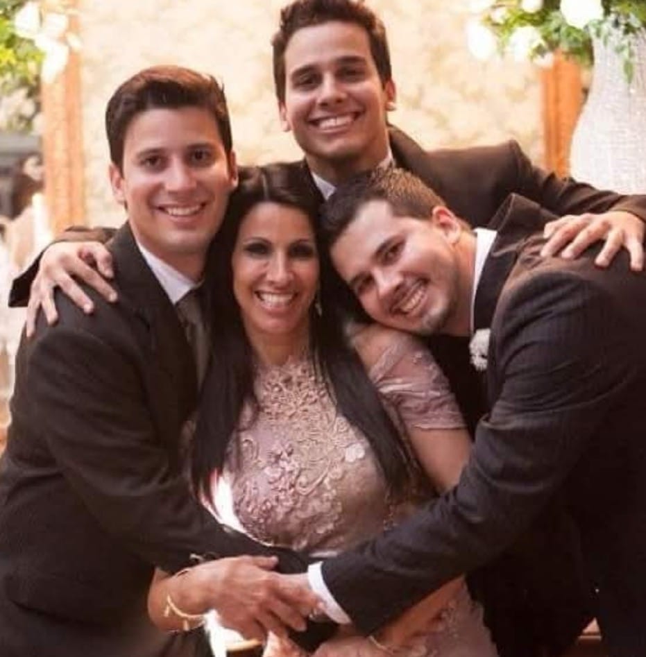 Tânia Bassan Manhães é aniversariante da próxima quarta-feira (9). Na foto ela aparece emoldurada pelos filhos Igor, Túlio e Raul.