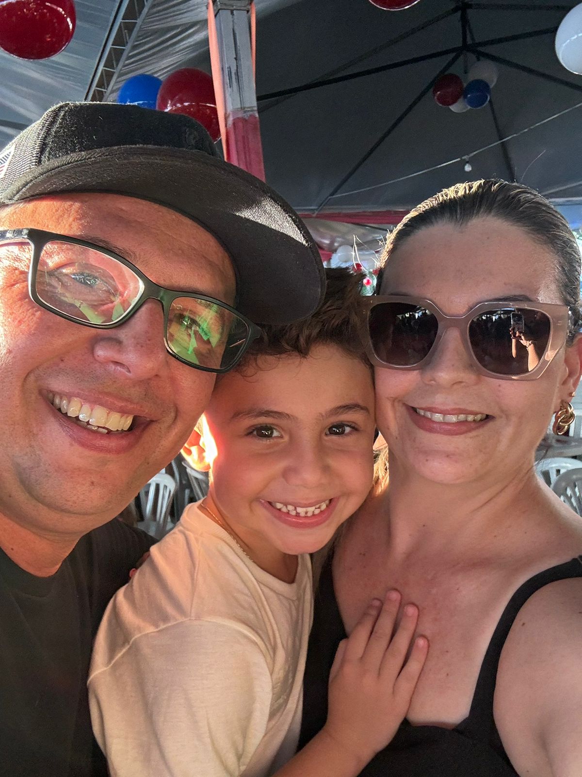 A engenheira elétrica Simone Zeitune Pinato Alves comemora seu cumple años na próxima terça-feira (5) com o marido Anderson e a filha Laís, que aparecem com ela na foto.