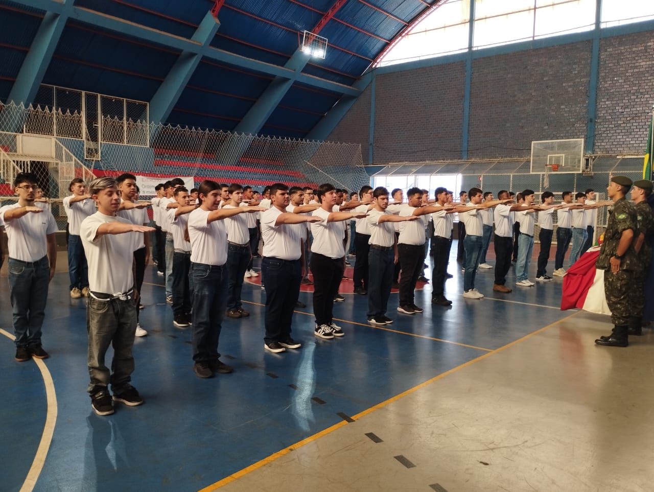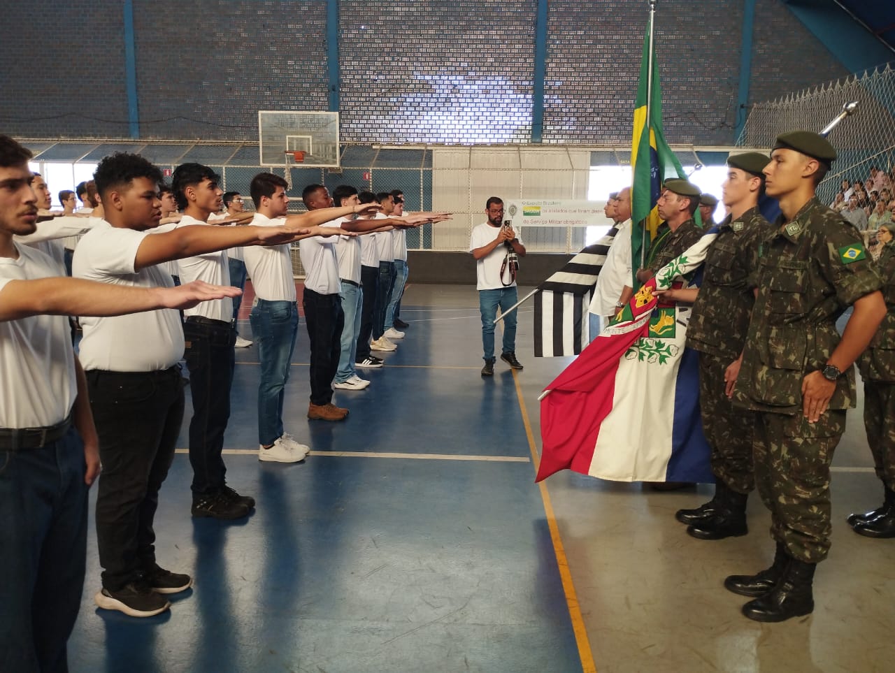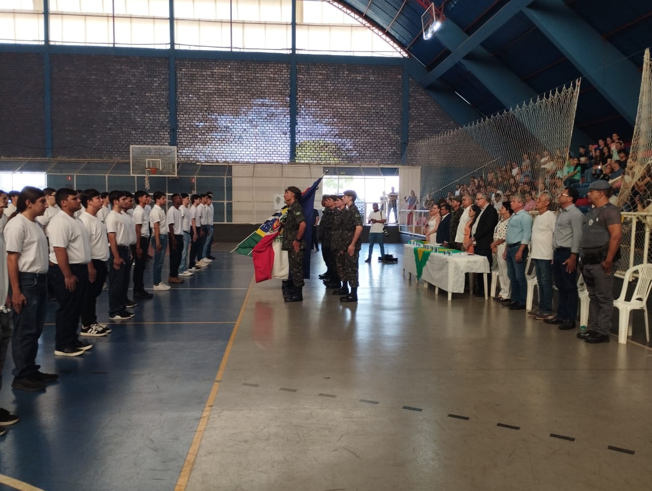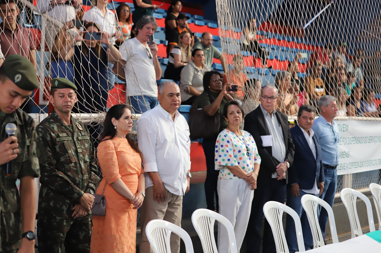 87 Jovens participaram da Solenidade Cívico-Militar de Juramento a Bandeira na sexta-feira da semana passada (12). A cerimônia foi presidida pelo prefeito e presidente da Junta Militar, João Roberto Camargo. Confira abaixo as fotos da solenidade.