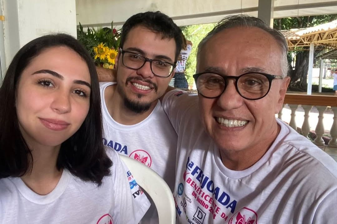 César Luis Maset brinda à idade nova na próxima quinta-feira (1) junto com a entrada do ano novo. Na foto ele aparece com os filhos Hugo e Ana Carolina.