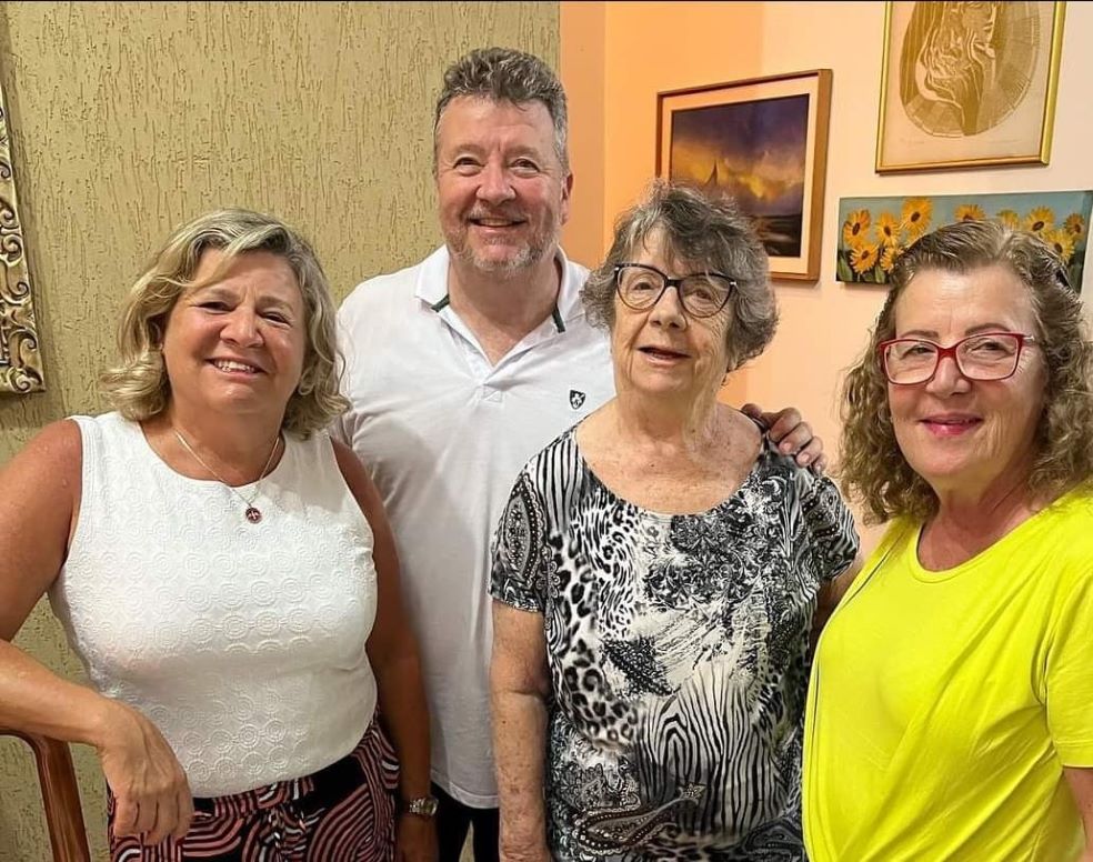 Ghislaine Gimenez Coletti completa idade nova na próxima quinta-feira (1). Na foto ela aparece com os filhos Márcia, Renato e Sandra.
