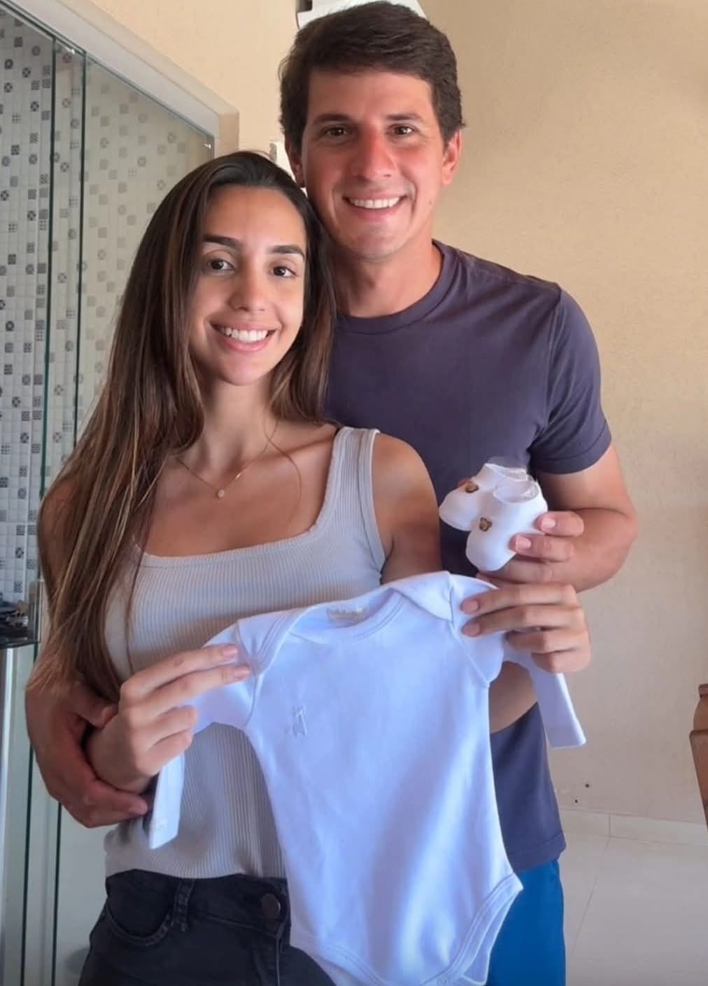 O casal Luma Miguel e Enzo Vergilio comemora o resultado positivo para a chegada do primeiro filho, para alegria dos avós de primeira viagem Deise e Edimar Miguel e Sônia e Luiz Vergílio.